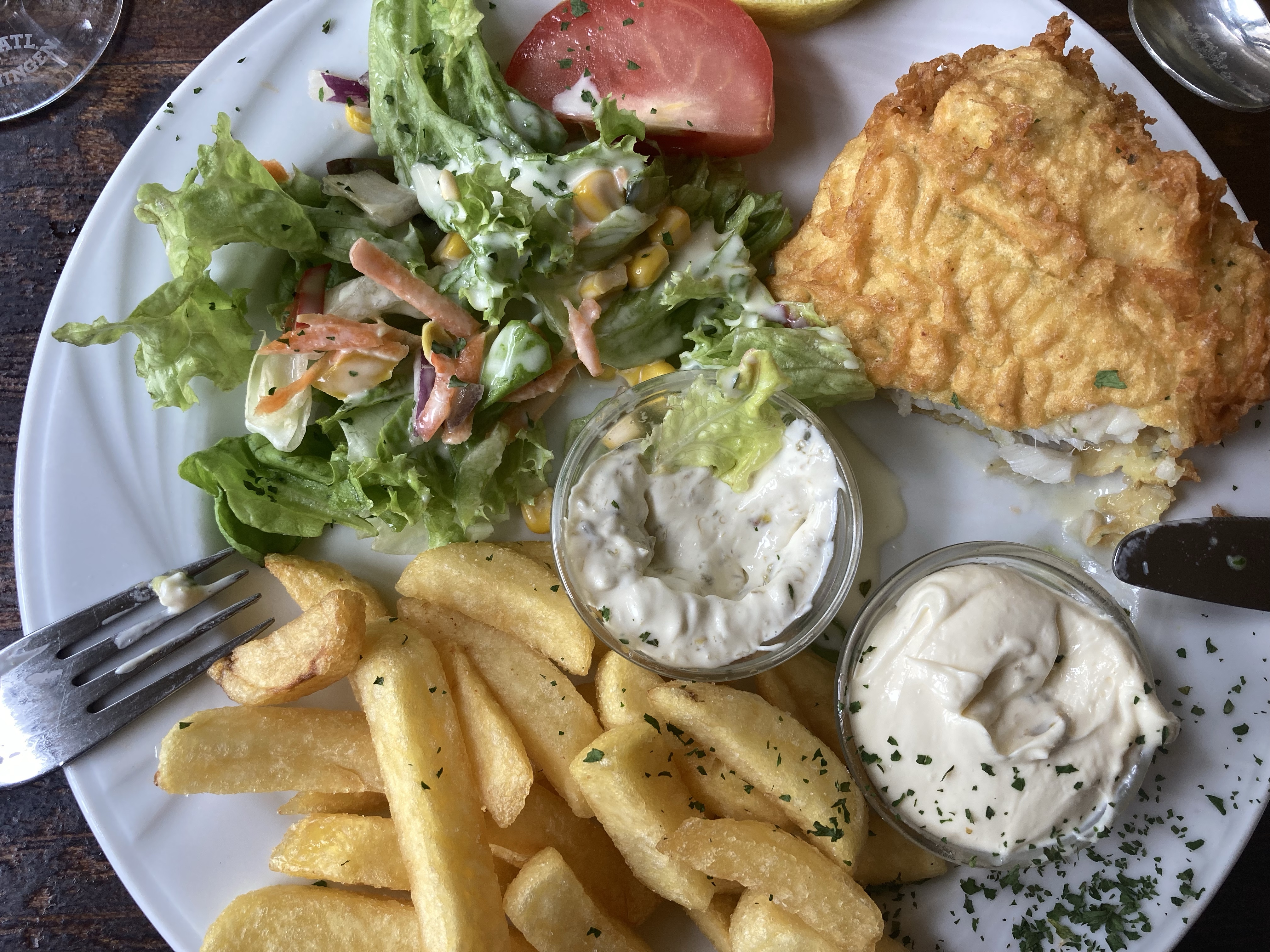 Auf meiner Weiterreise in den hohen Norden, der nächste Familiengruß bei meiner Cousine und Moers überrascht mich: das Städtchen ist wirklich nett, hat eine zuckersüße Innenstadt. Eine nette Piazza, niedliche Geschäfte, schön renovierte Häuser und dann eben noch diese irische Bar. Neben einer tollen Speisekarte probiere ich heute das erste mal Fish und Chips. Lecker. Der Fisch ist superfrisch, die Chips knackig, die Saucen allerfeinst. Eine tolle Überraschung. Gestärkt gehts weiter in den Norden.