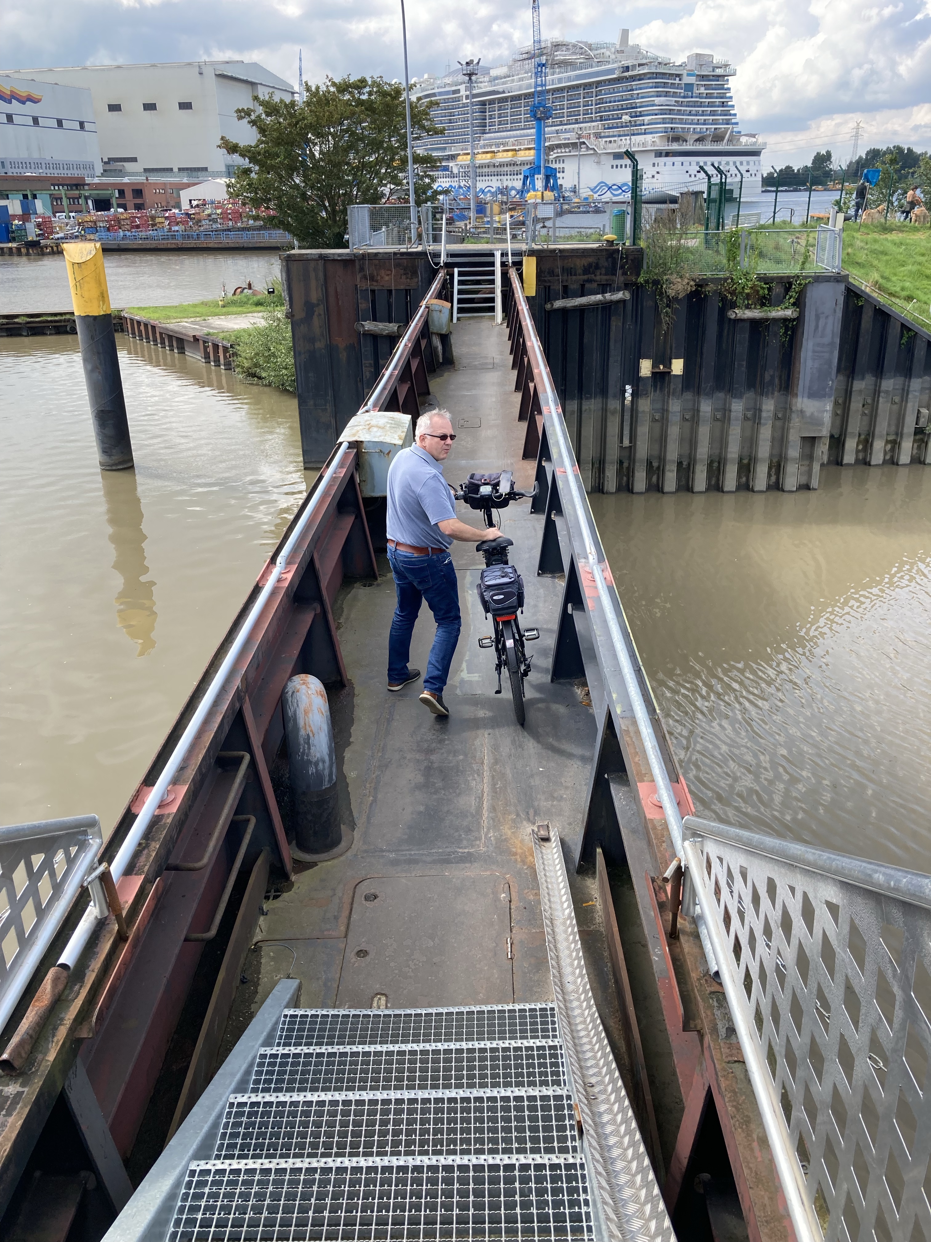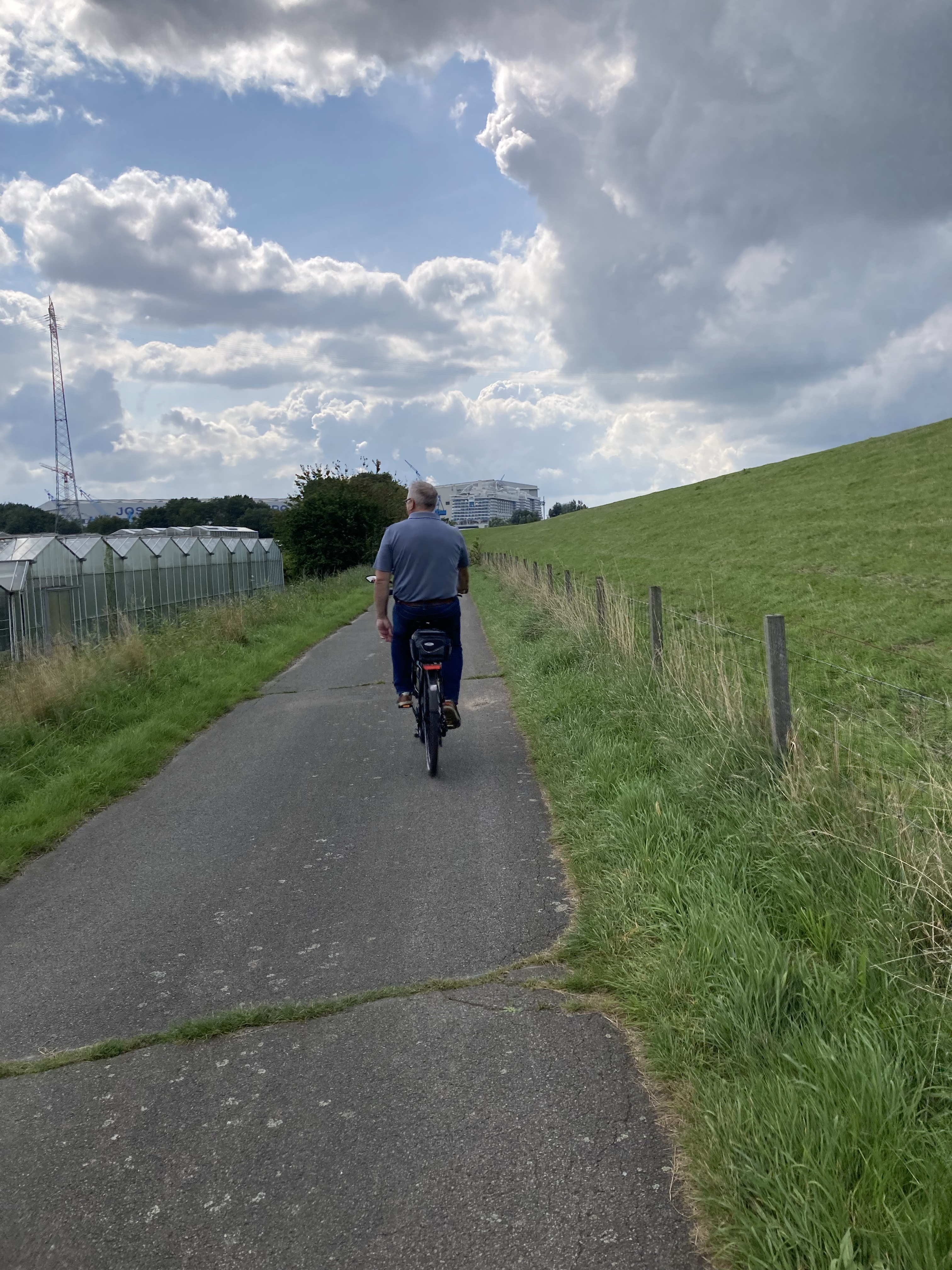 Am vierten Tag lässt sich nun auch in Ostfriesland wieder mal die Sonne blicken. Wir radeln heute. Ostfriesland ist Land der Fahrräder, unübersehbar. Fast alles radelt, ohne und mit e-Unterstützung. Fahrradwege gibts überall. Von Westoverledingen fahren wir durch Felder, Alleen, Wiesen, Parks und Wälder Papenburg entgegen, mein Cousin führt zackig unsere Truppe an, ich verliere die Orientierung. Bei der bekannten Meyer Werft, bin ich wieder dabei.