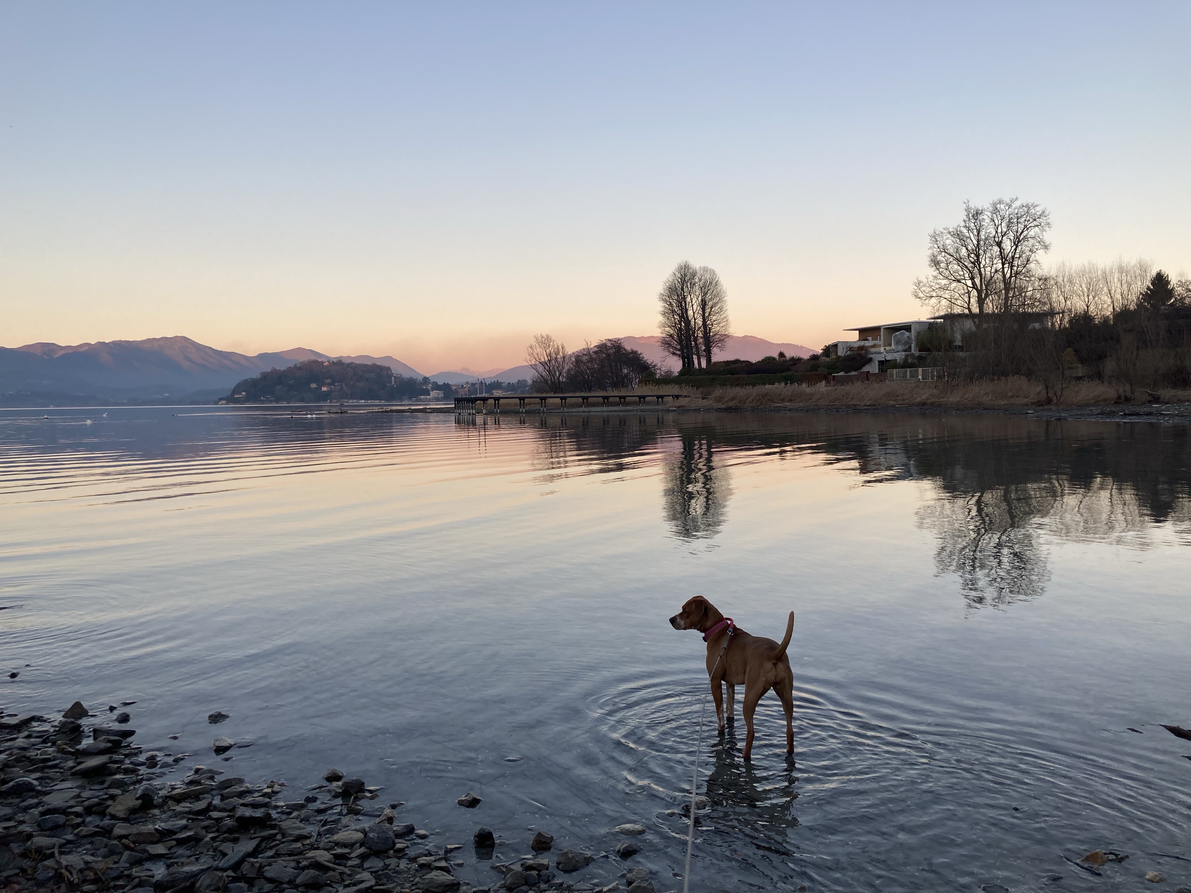Nach dem Einrichten gönnte ich mir einen Spaziergang zum Seeufer, um den Sonnenuntergang zu genießen. Der Lago Maggiore zeigte sich von seiner schönsten Seite, mit ruhigem Wasser und einer friedlichen Abendstimmung.